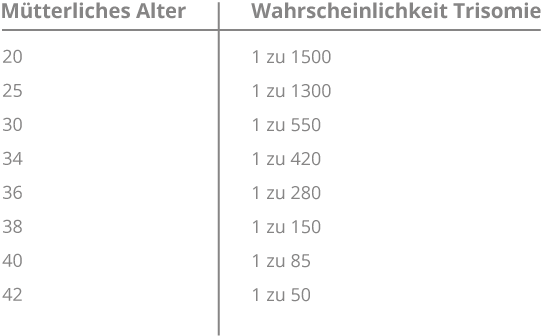 Trisomie 21, auch Down-Syndrom oder Mongolismus genannt, ist die häufigste Chromosomenstörung. Kinder mit einem Down-Syndrom zeigen eine körperliche und geistige Beeinträchtigung. Diese Krankheit ist nicht heilbar. Das Risiko dieser Erkrankung steigt mit zunehmendem Alter der Mutter an.